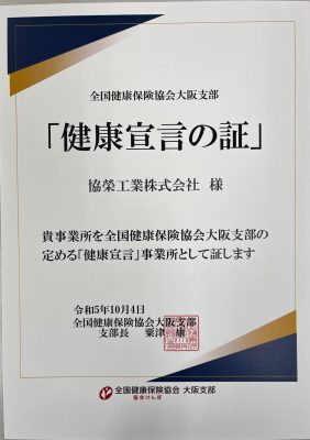 協会けんぽ大阪支部の「健康宣言」認定制度に参加しました